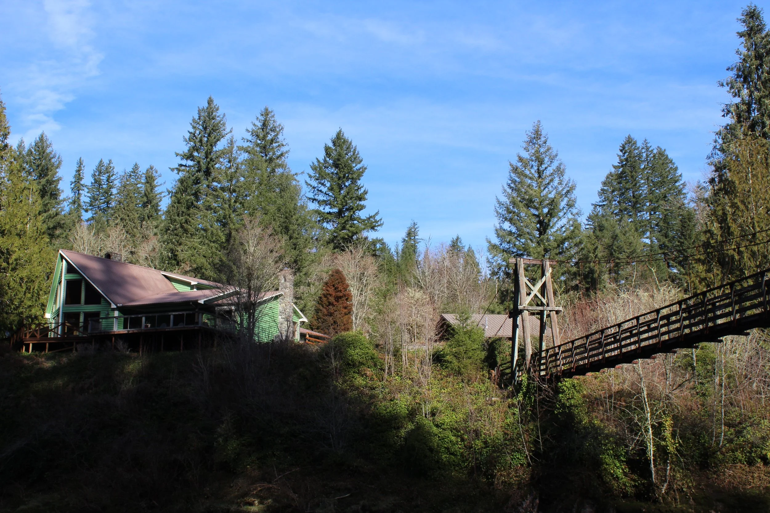 A delux, private suites in the west wing of the lodge with its own river front entrance/exit. It boasts a jacuzzi bath tub, a private fireplace, basic kitchenette and stunning views of Kalama River.